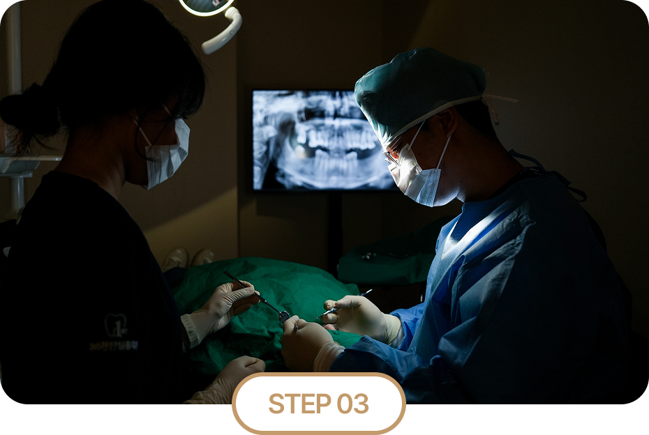 맞춤형 계획을 진행하여 뼈이식 및 식립을 진행합니다.