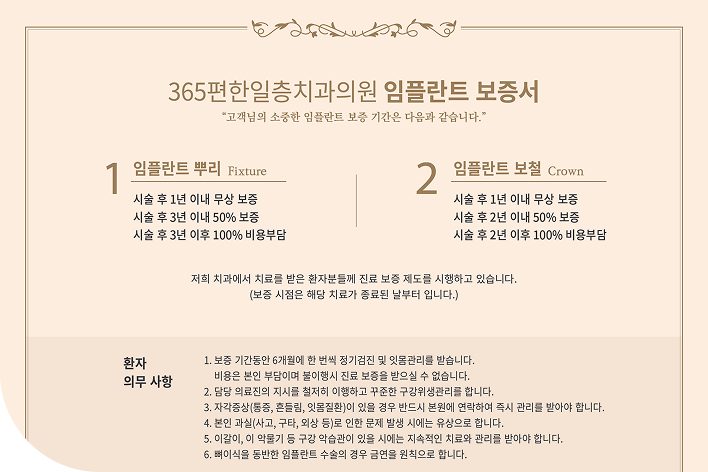 임플란트 진료 보증 시스템은 저희 의료진이 환자분께 드리는 약속이자,